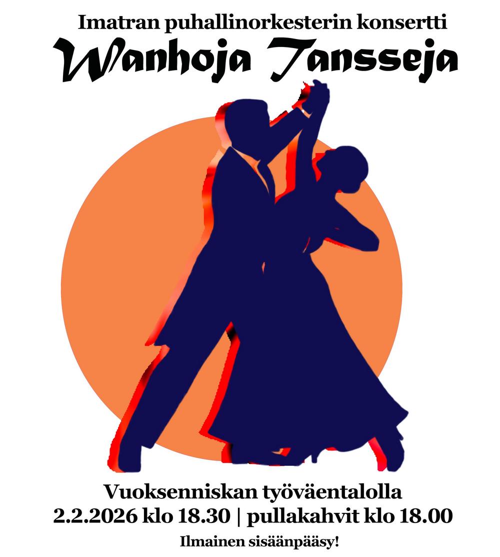 Imatran puhallinorkesteri esittää vanhojentanssimusiikkia Vuoksenniskan työväentalolla.